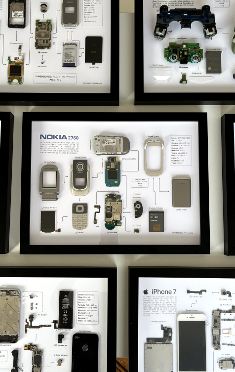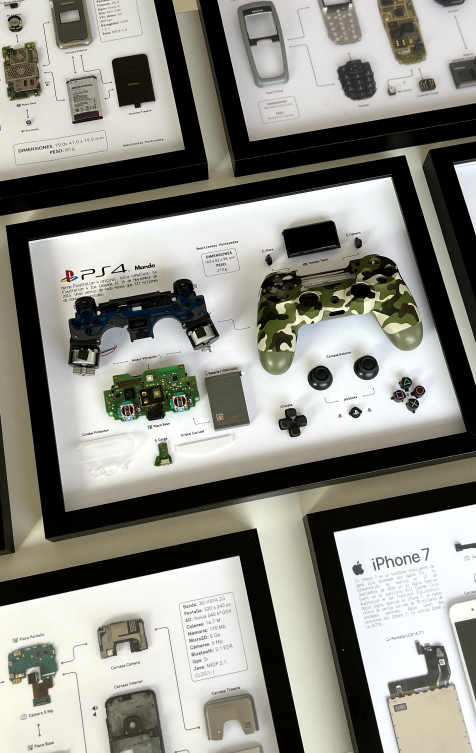 Explora nuestra colección única de cuadros a la venta, hechos con piezas de dispositivos electrónicos. Cada obra es una fusión de arte y tecnología que ofrece un toque especial a cualquier espacio.
